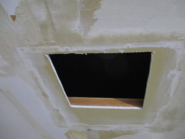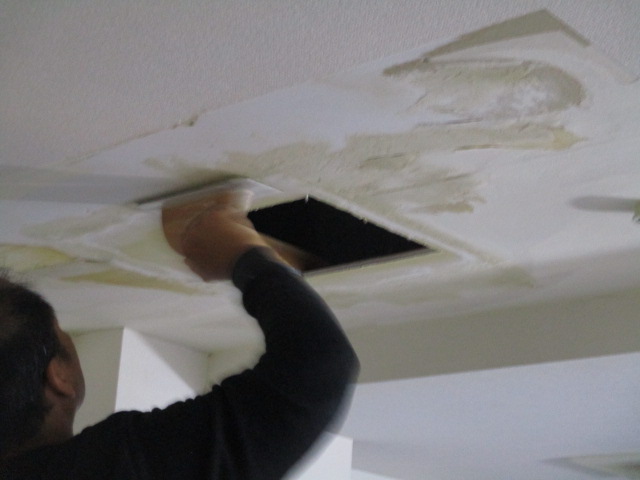 パテ処理による段差解消と点検口開口の仕上げ