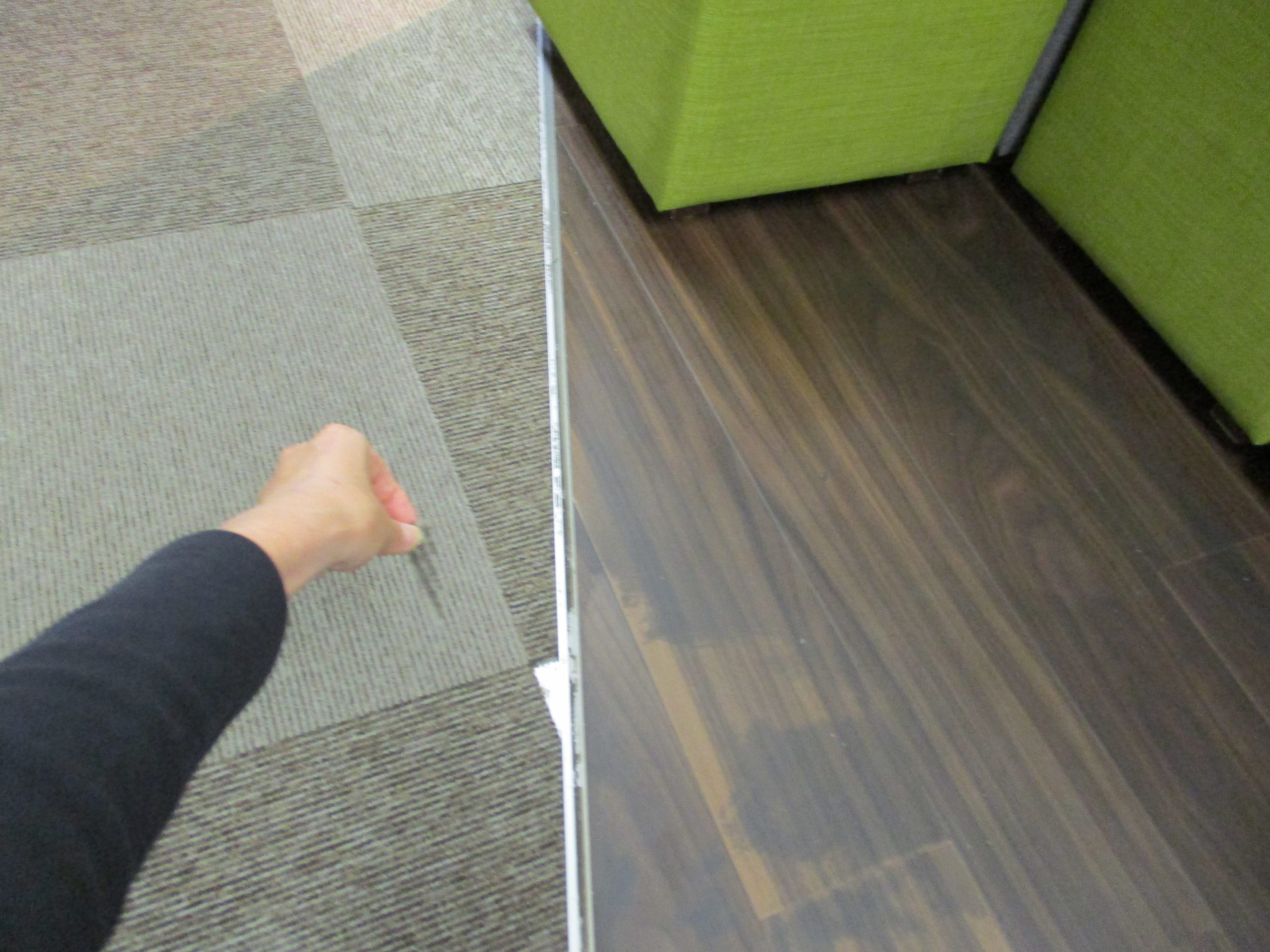 既存のタイルカーペットを一枚ずつ丁寧に剥がし、床の状況を点検いたします。