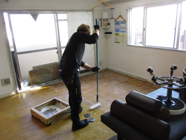 剥がし終えた下地を清掃し、新しい専用のピールアップボンドを塗布していきます。