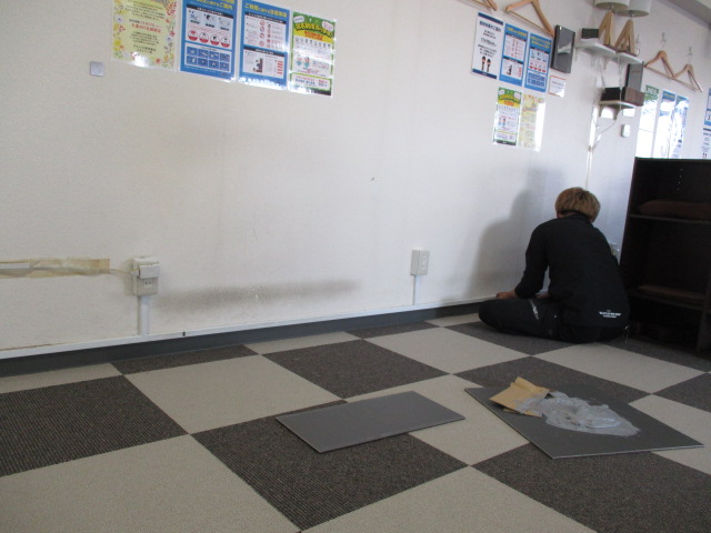 全てのタイルカーペットとソフト巾木の交換が完了いたしました。見違えるように明るく、清潔になった店内の様子をご覧ください。