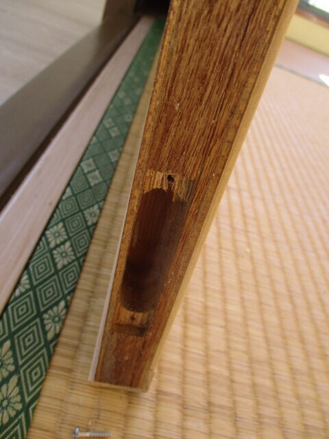 引戸を下ろして底を覗き込み、古い戸車を取り外して確認したところ、やはり想像していた通り、動きを妨げている決定的な原因が見つかりました。