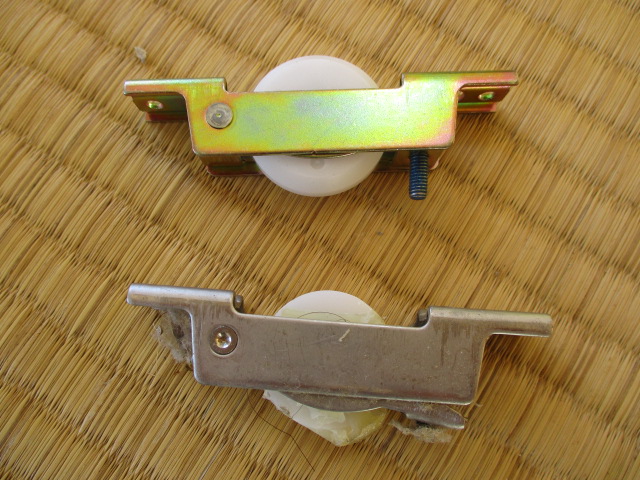 取り外した古い戸車です。肝心の車輪部分が激しく欠けてしまっているのがはっきりとわかります。