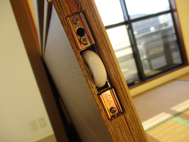 もし皆様のご自宅で、引戸がどこかに引っかかり、開閉がスムーズに行かない場合は、まずは一度扉を外して戸車チェックをしてみてはいかがでしょうか。戸車に絡まったホコリを取り除くだけで動きが改善することもありますが、今回のように車輪そのものが欠けたり摩耗したりしている場合は、早急な部品交換が必要となります。