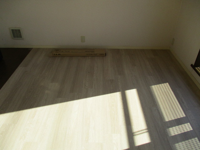 職人の手によってお部屋全体のフロアタイルの張り込み作業が完了いたしました。見違えるように明るく生まれ変わったお部屋の様子をご覧ください。