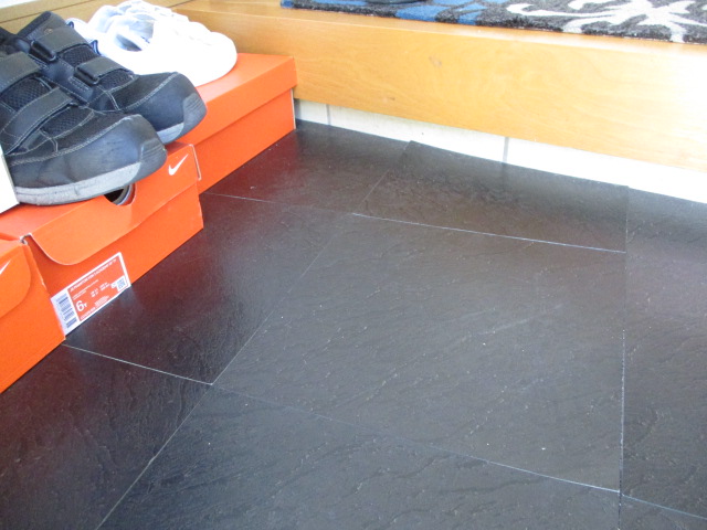 施工後 サンゲツの石目調フロアタイルで高級感溢れる玄関へ