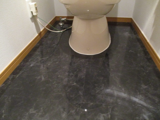 同じフロアタイルをトイレの床に施工した事例です。清潔感と高級感が格段に向上します。
