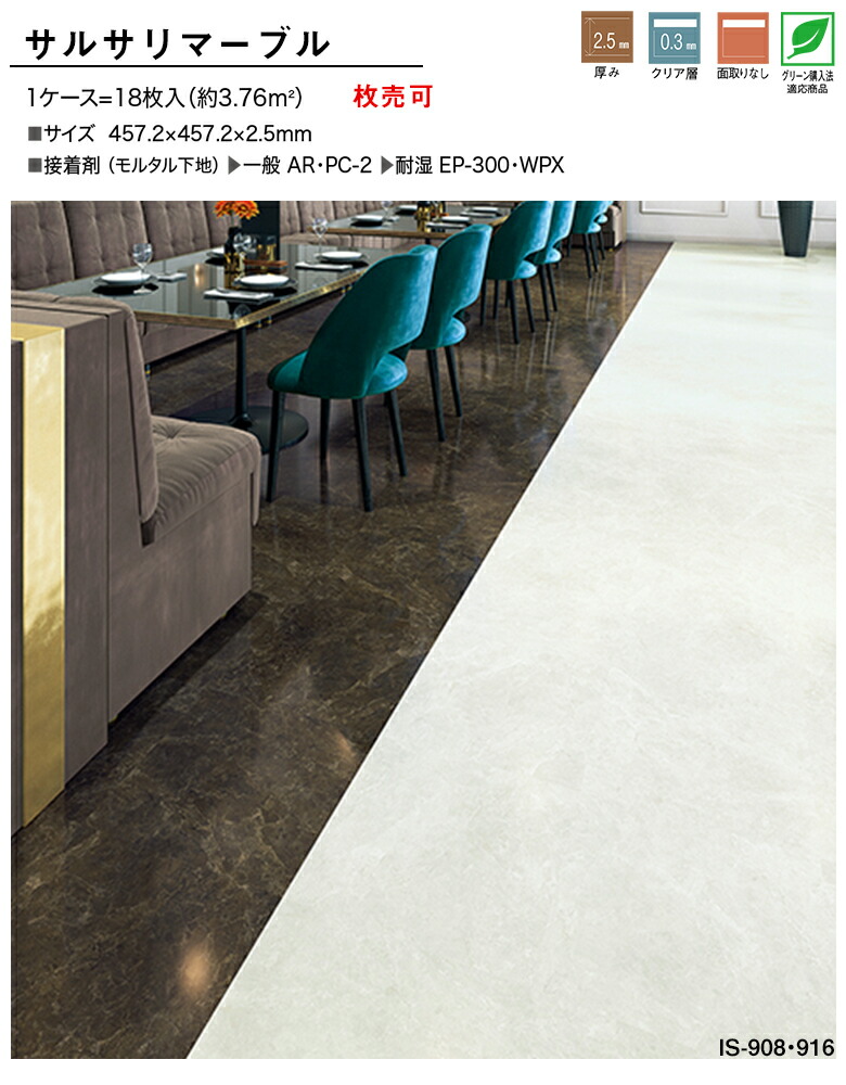 めくれ上がって見すぼらしかった以前の姿は完全に消え去りまるで高級ホテルのエントランスのようにピカピカに輝く洗練された美しい玄関空間へと劇的な進化を遂げました。今回お客様に選んでいただき使用した床材は国内最大手の内装材メーカーであるサンゲツが製造しているIS921という型番の製品です。これはサルサリマーブルという名前が付けられた非常に人気のある石目調のフロアタイルです。