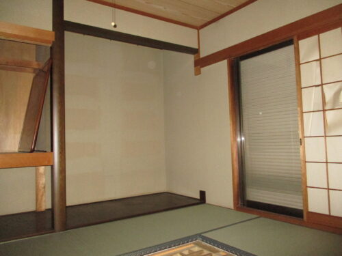 写真をご覧いただくと青々とした畳が敷かれた立派な和室の様子がお分かりいただけるかと思います。そしてこの和室の中央には足を下ろしてくつろぐことができる本格的な掘りごたつが設置されていました。掘りごたつは冬場には非常に暖かく快適な設備ですが現代のライフスタイルにおいては一年を通して部屋のレイアウトを固定化してしまいお掃除の手間もかかるため使われなくなってしまうご家庭も少なくありません。今回はこの二間続きの和室を洋室に変更し既存のダイニングキッチンとつなげて広々としたリビング空間を作り出すと同時に一部の空間には新しく壁を立てて完全に独立した洋室の個室を一つ作り出すという非常に大掛かりな間取りの変更を行っていきます。