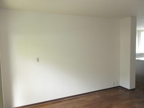 壁と天井のクロスが張り終わった後最後に床一面に新しいフローリングを敷き詰めてすべてのリノベーション工事が完了いたしました。見違えるように生まれ変わった広大なリビング空間をご覧ください。