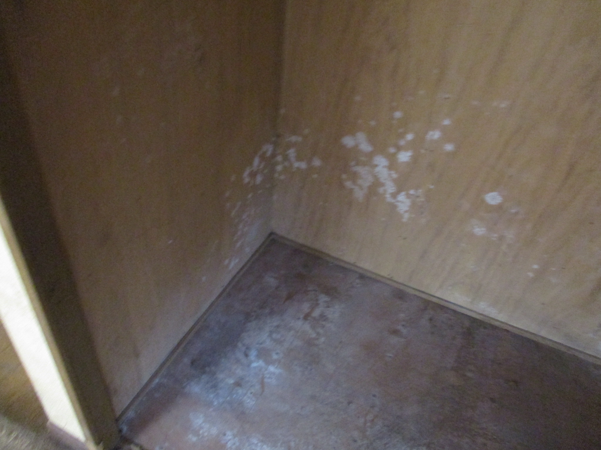 こちらはクリーニングが入る前の状態の収納の床です。当初の現地調査の段階では、全体的な表面の汚れやカビが目立っていたものの、床そのものにそこまで深刻な傷みがあるようには見えませんでした。