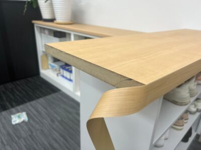 頑丈な合板の土台が完成した後は、いよいよ表面の仕上げ工程へと移ります。