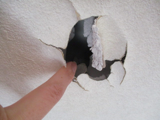 施工前 複数箇所に開いてしまった石膏ボードの痛々しい穴