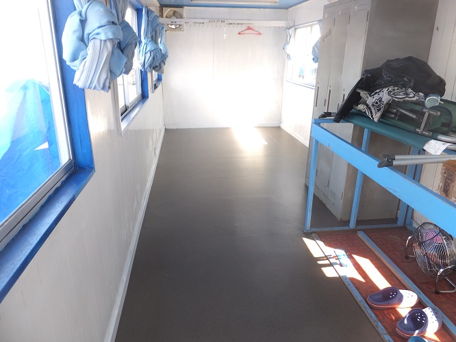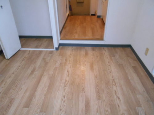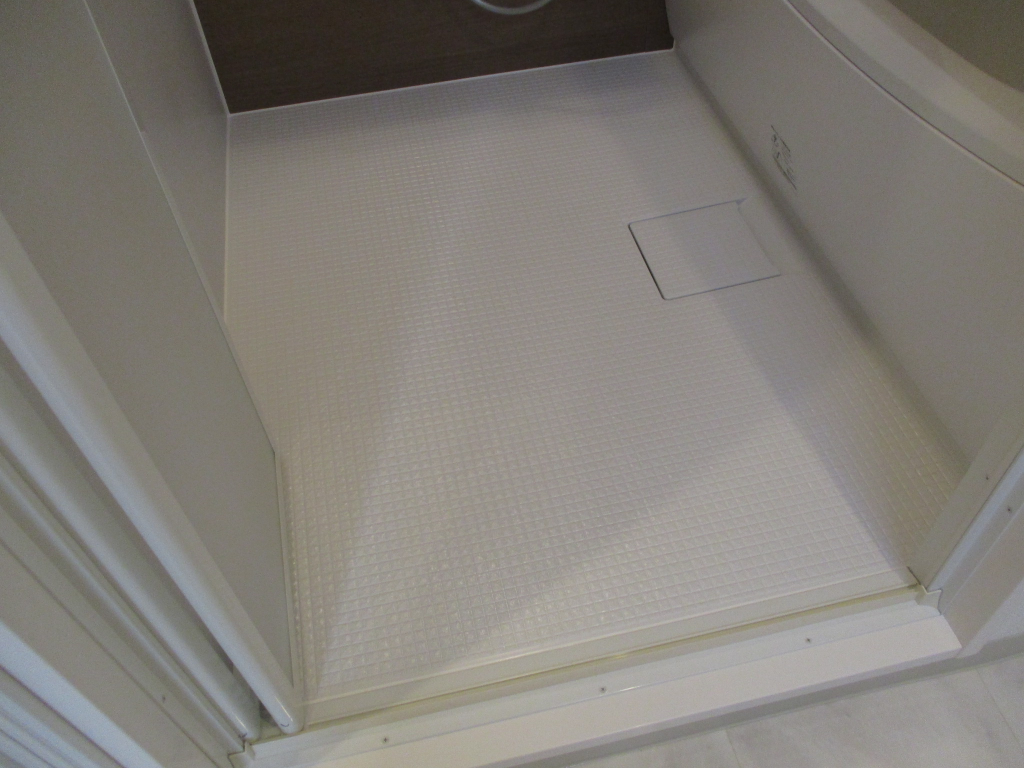 内装材にも徹底的にこだわり、空間全体を明るく演出しています。壁のクロスには防カビ性に優れたサンゲツの製品を、天井には湿気に強いリリカラのクロスを採用いたしました。床には耐水性が高く足ざわりの柔らかいサンゲツのクッションフロアを敷き詰め、床と壁の境目を美しく引き締める巾木もサンゲツの製品で統一しています。複数のメーカーの優れた素材を適材適所で組み合わせることで、新築以上の美しさと耐久性を実現しました。