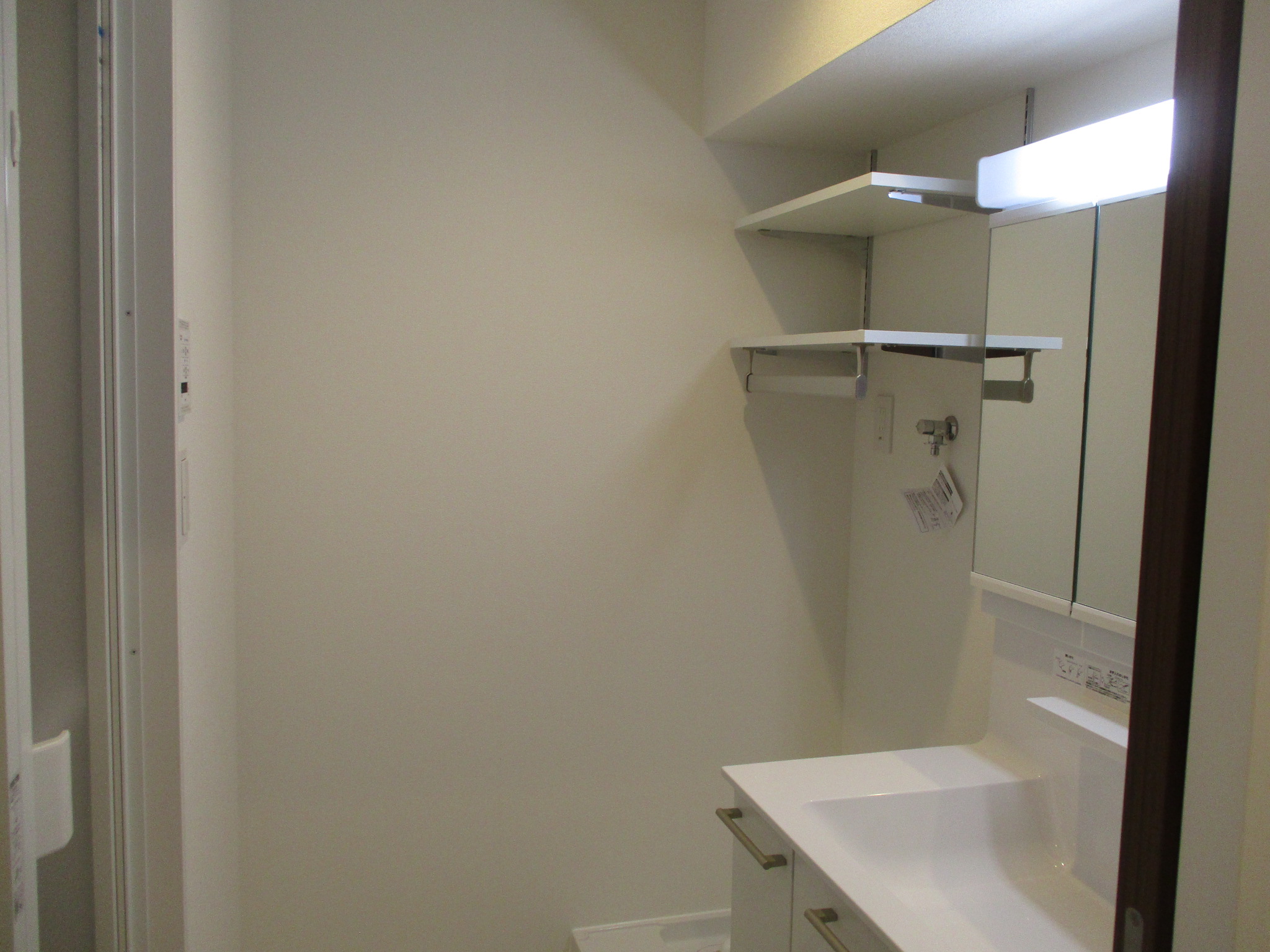 古い設備をすべて撤去し、給排水管のメンテナンスと内装の全面張り替えを経て、新しい設備の設置が完了いたしました。見違えるほど美しく、清潔感あふれる空間へと生まれ変わった洗面室をご覧ください。