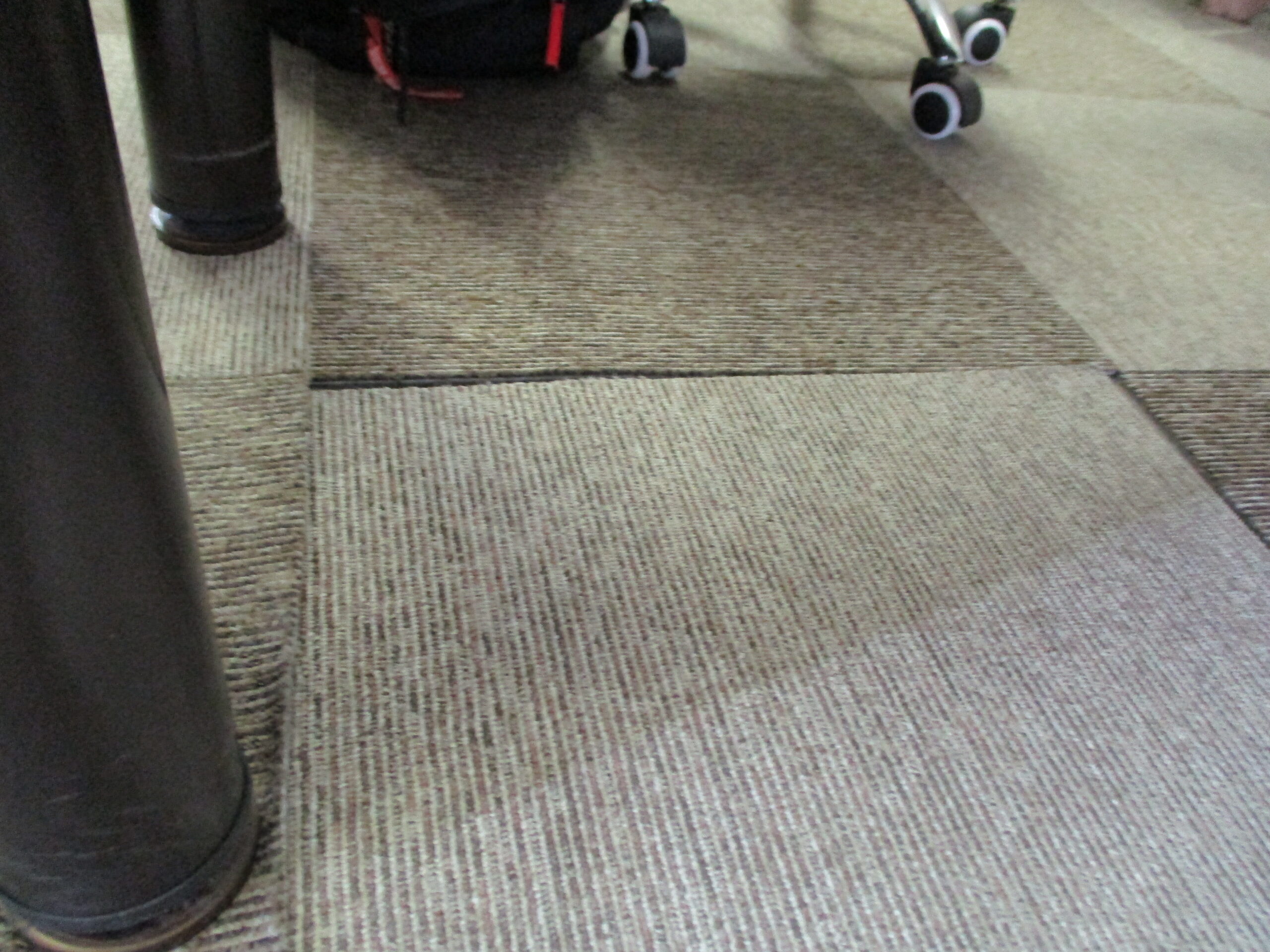タイルカーペットは、50センチメートル角ほどの正方形のカーペットをパズルのように床に敷き詰めていく床材です。汚れた部分だけをピンポイントで交換できるという素晴らしいメリットがありますが、その反面、長年の歩行による摩擦や台車の移動などによって強い負荷がかかり続けると、四隅の角から反り返りが発生してしまうことがあります。