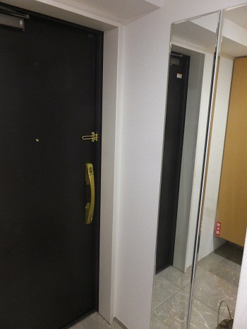 二つ目は、入念な「下地処理」です。古い壁紙を剥がすと、下地である石膏ボードの継ぎ目や、タオル掛けなどを固定していたビスの穴などが露出します。これらのわずかな凹凸を専用のパテで完全に平らに埋める作業(不陸調整)を行わなければ、新しい壁紙の表面に波打つような影が出てしまいます。今回のような木目調や濃い色のクロスは、特に下地の段差が目立ちやすいため、この見えない下地処理の精度が仕上がりの美しさをすべて決定づけます。