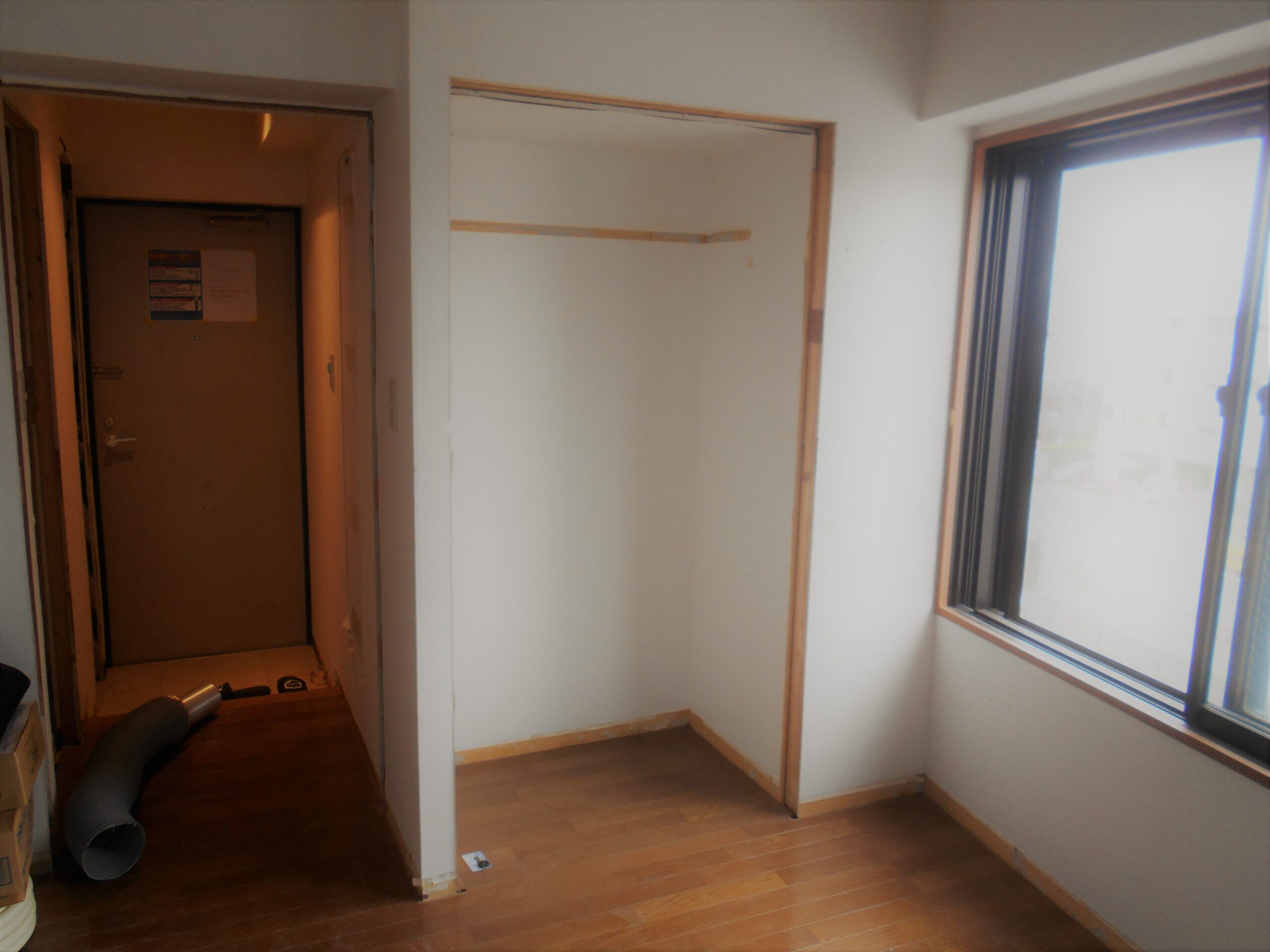 こちらの物件は階数が高く、窓のすぐ外は空中です。窓枠が低いため、少し足を踏み外しただけで真っ逆さまに落ちてしまうような錯覚を覚えます。工事を行う職人も、安全帯(命綱)をしっかりと装着し、細心の注意を払いながら作業を進めていきました。