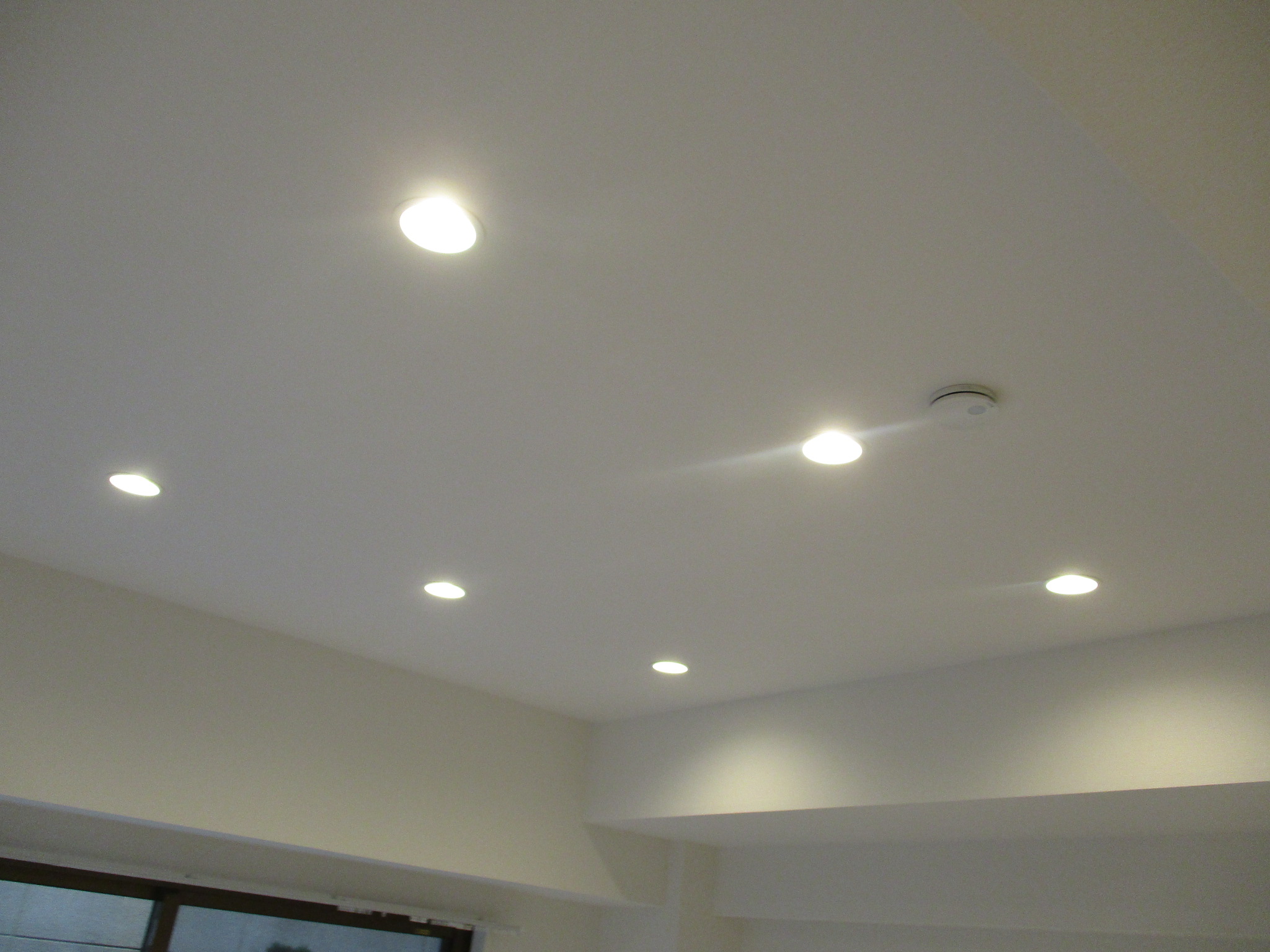 電気工事が無事に完了し、新しいダウンライトが天井にスッキリと収まりました。生まれ変わったお部屋の様子をご覧ください。