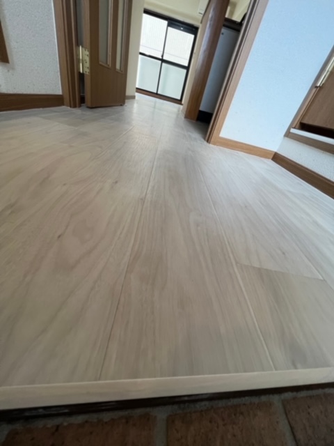 新しい床材を敷き詰めた後の、見違えるように明るくなったお部屋をご覧ください。