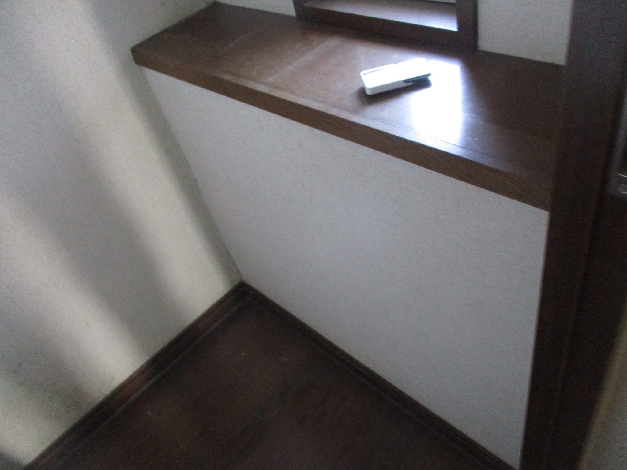 このようにカウンターが傷んでしまった場合、解決策は大きく分けて二つあります。一つは「木材の板そのものを新しいものに交換する」方法です。しかし、出窓の板は壁の内部に深く入り込んで固定されているため、板を交換しようとすると、周囲の壁紙(クロス)を剥がし、壁の一部を壊さなければならない大掛かりな大工工事になってしまいます。当然、費用も工期も大きく膨らみます。