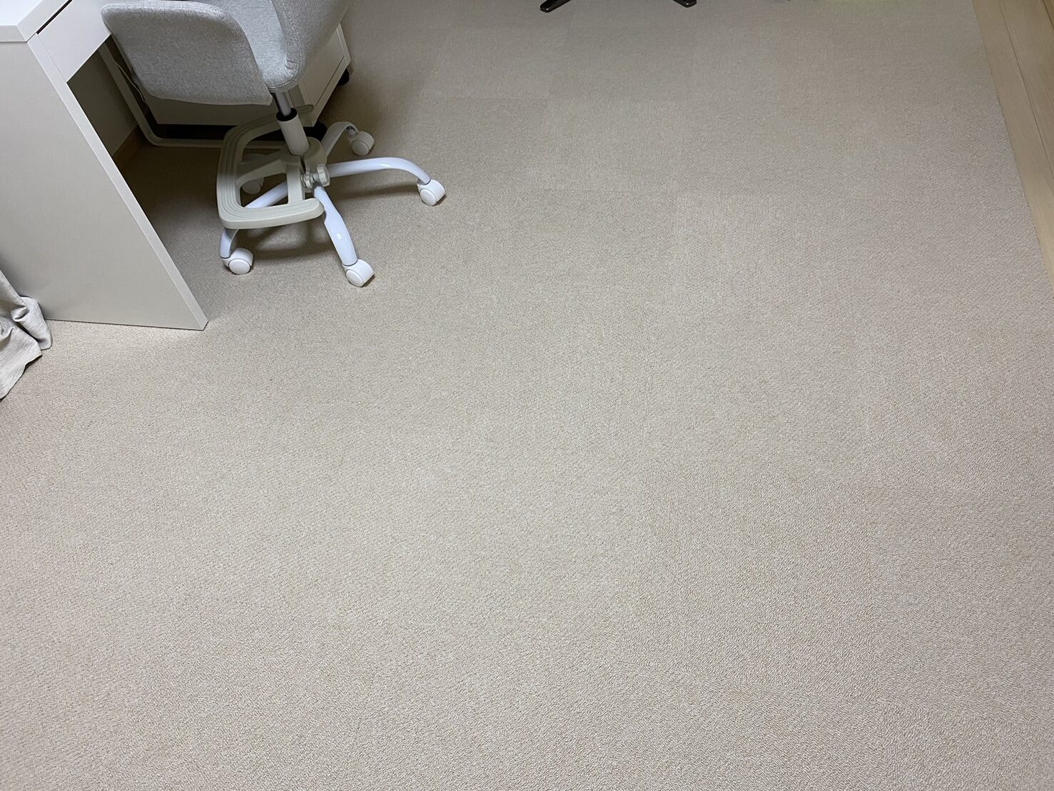 平滑になった下地に対して、そのままシートを貼ることは絶対にいたしません。必ず「プライマー」と呼ばれる専用の密着向上剤(下地処理剤)を、扉の全面、特に剥がれやすい端部(小口)や角に念入りに塗布します。このプライマーが基材に浸透することで、ダイノックシートの粘着層と強固に化学結合し、キッチン特有の湿気や熱による将来的な剥がれを完全に防ぎます。