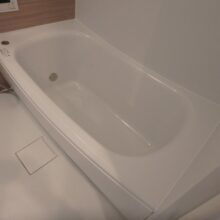 - パテによる不陸調整: 既存のひび割れや、タイル間の段差を専用の補修材で埋めていきます。この工程により、上貼りであっても「一枚の強固な板」のような平滑な下地が完成します。