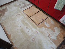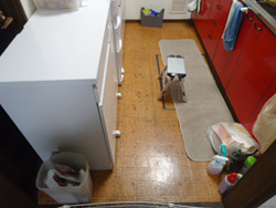 調布市にて、キッチンのクッションフロア張替工事を行ってきました。