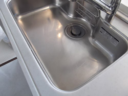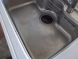 キッチンシンクの清掃前です。