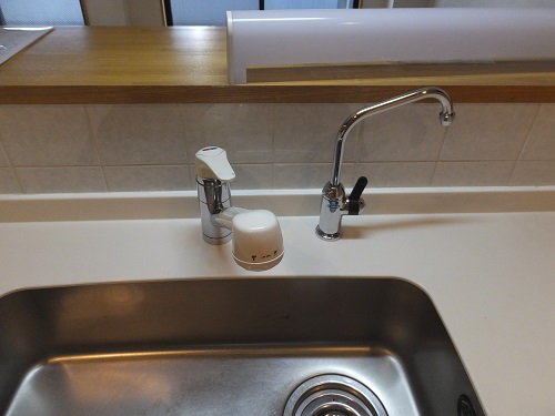 水栓、浄水カートリッジ、菊割、排水籠を交換しました。