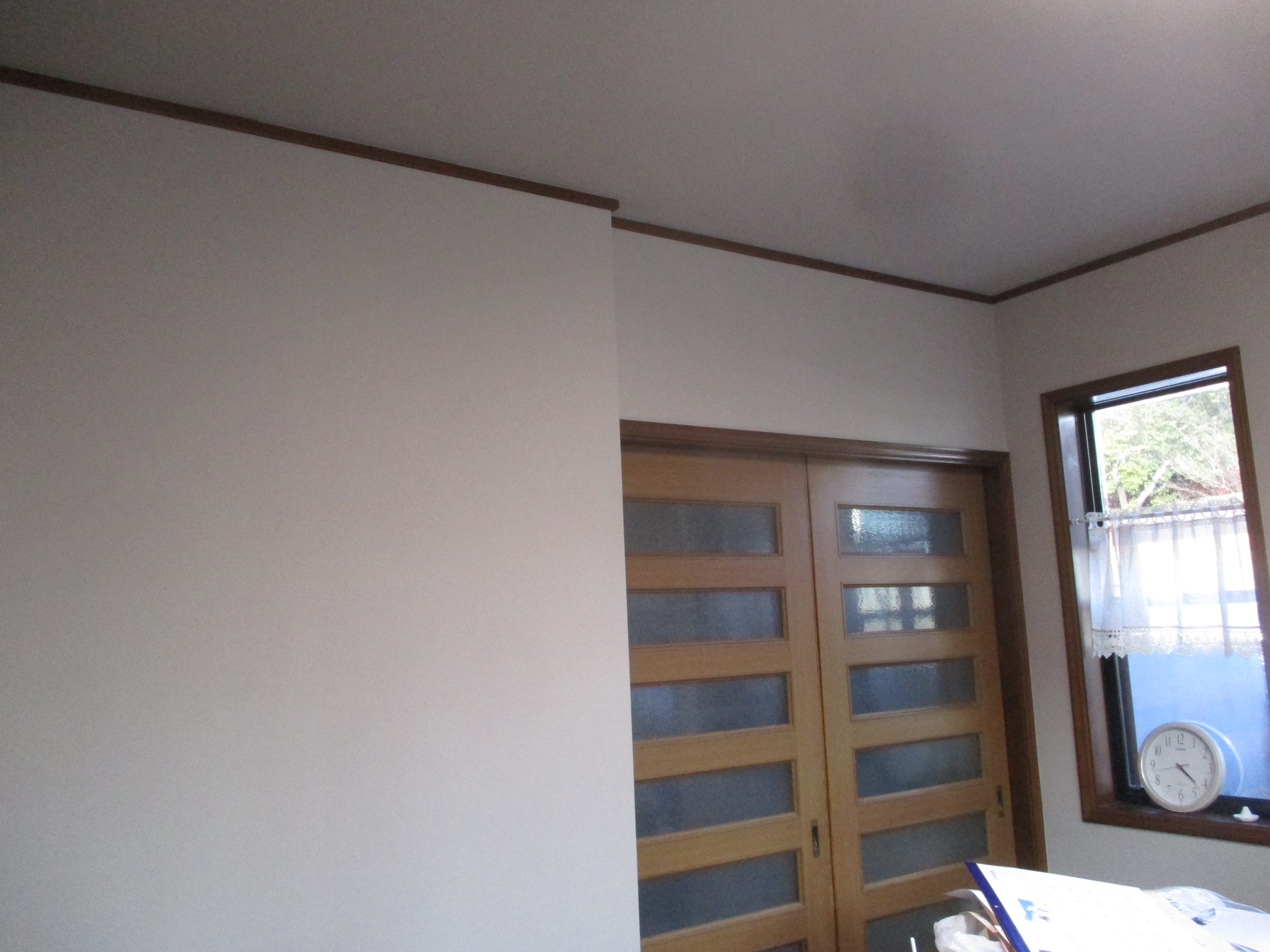 扉の木枠を白く塗装、クラシカルな印象でDKに居るのが楽しくなりそうですねヽ(^o^)丿