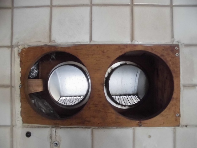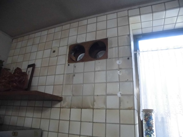 既存のレンジフードを取外し、ダクト穴を合わせます。