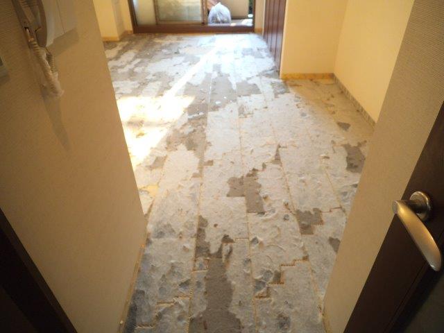 施工開始!フローリング床を剥がしていきます。♫~べりべりべり~♬ の (^^♪~べーりべり~♪