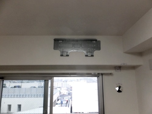 エアコンはひっかけて設置しているので、その部分も計算して位置決めをします。