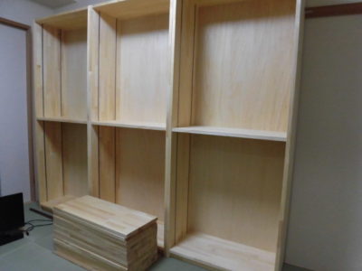 大容量で補強もしっかり丈夫な本棚が完成しました!