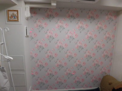 5. 【町田市】いくら掃除しても落ちない「壁の黄ばみ・傷」を一掃!透明感ある上品な花柄クロスで、トイレを華やかなリラックス空間へ張り替えリフォーム