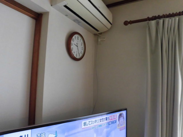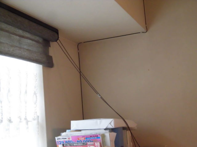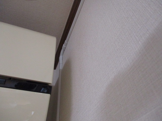 テレビケーブルがだらりとぶら下がっています。壁紙の白さに対して、黒いケーブルは非常に目立ち、お部屋の印象を重くしてしまいます。