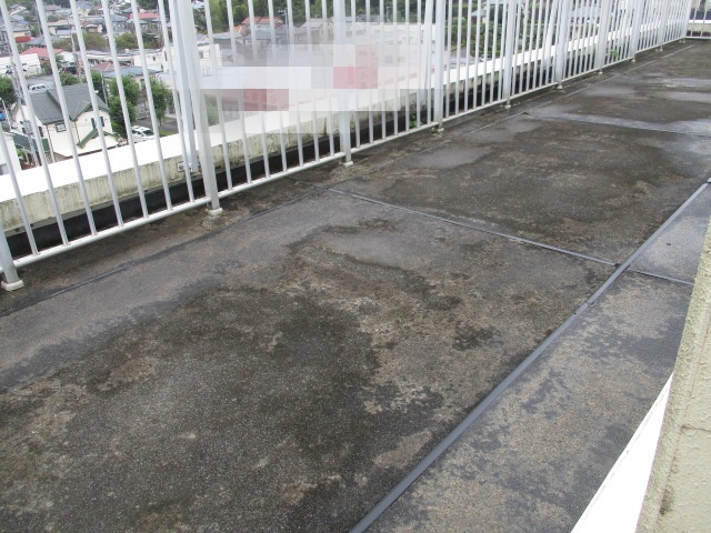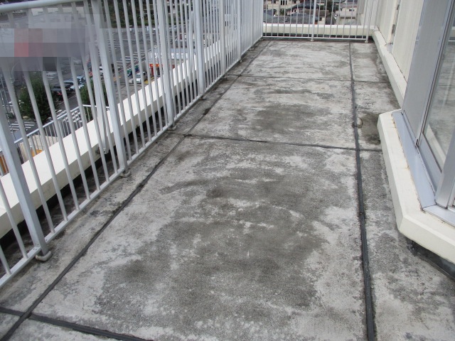 バルコニーの床面です。傷んだ表面の変色は否めませんが、全体的にスッキリとして清潔感があります。