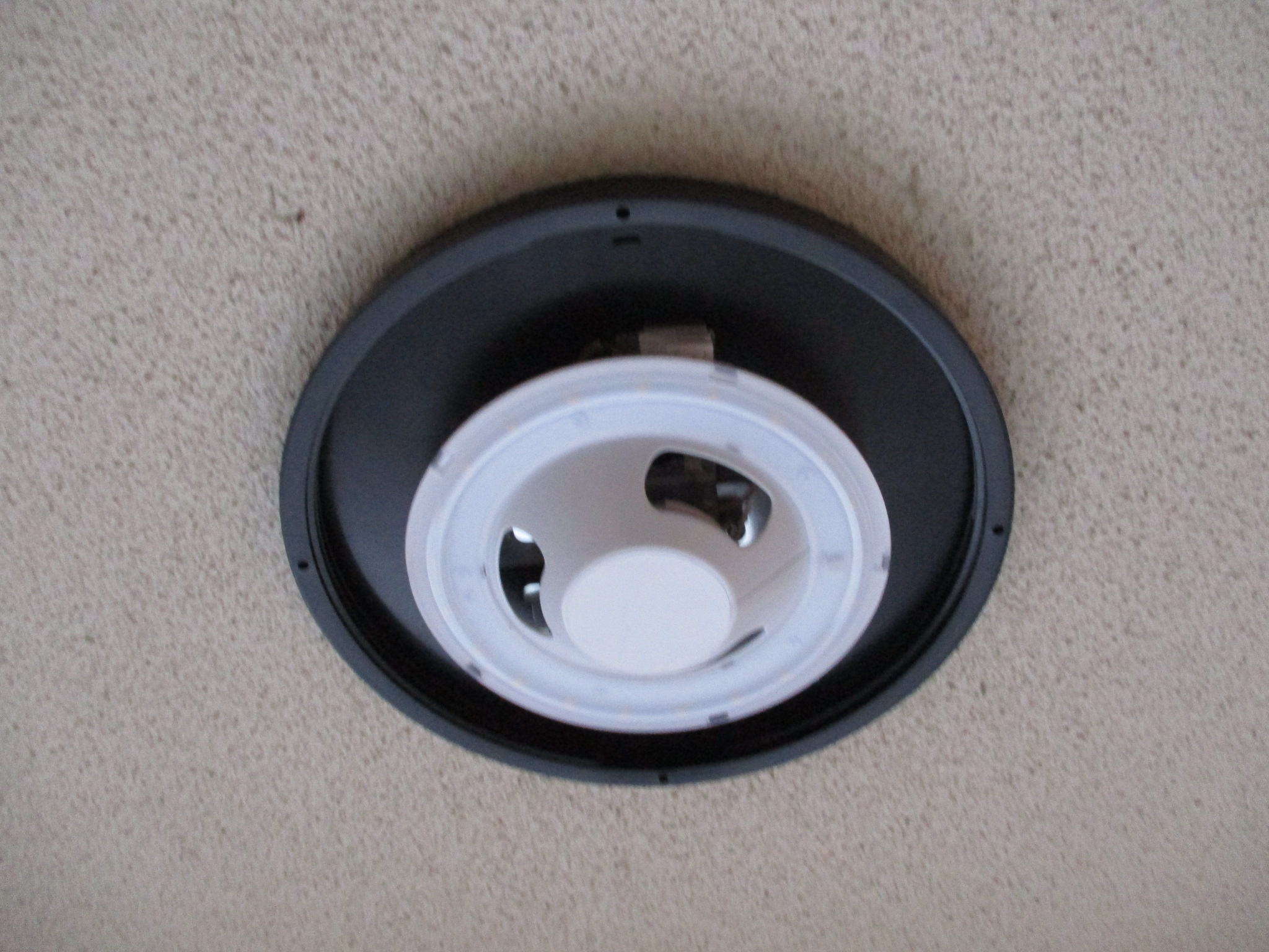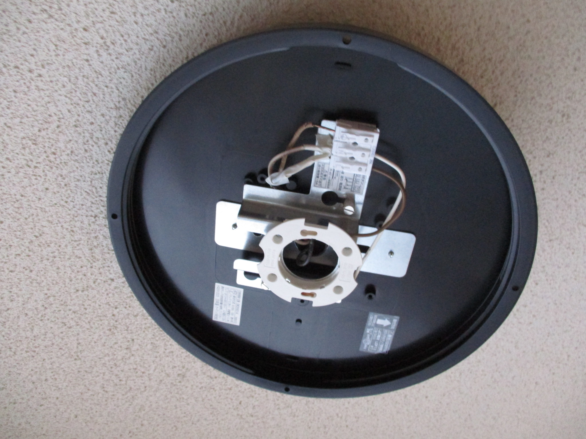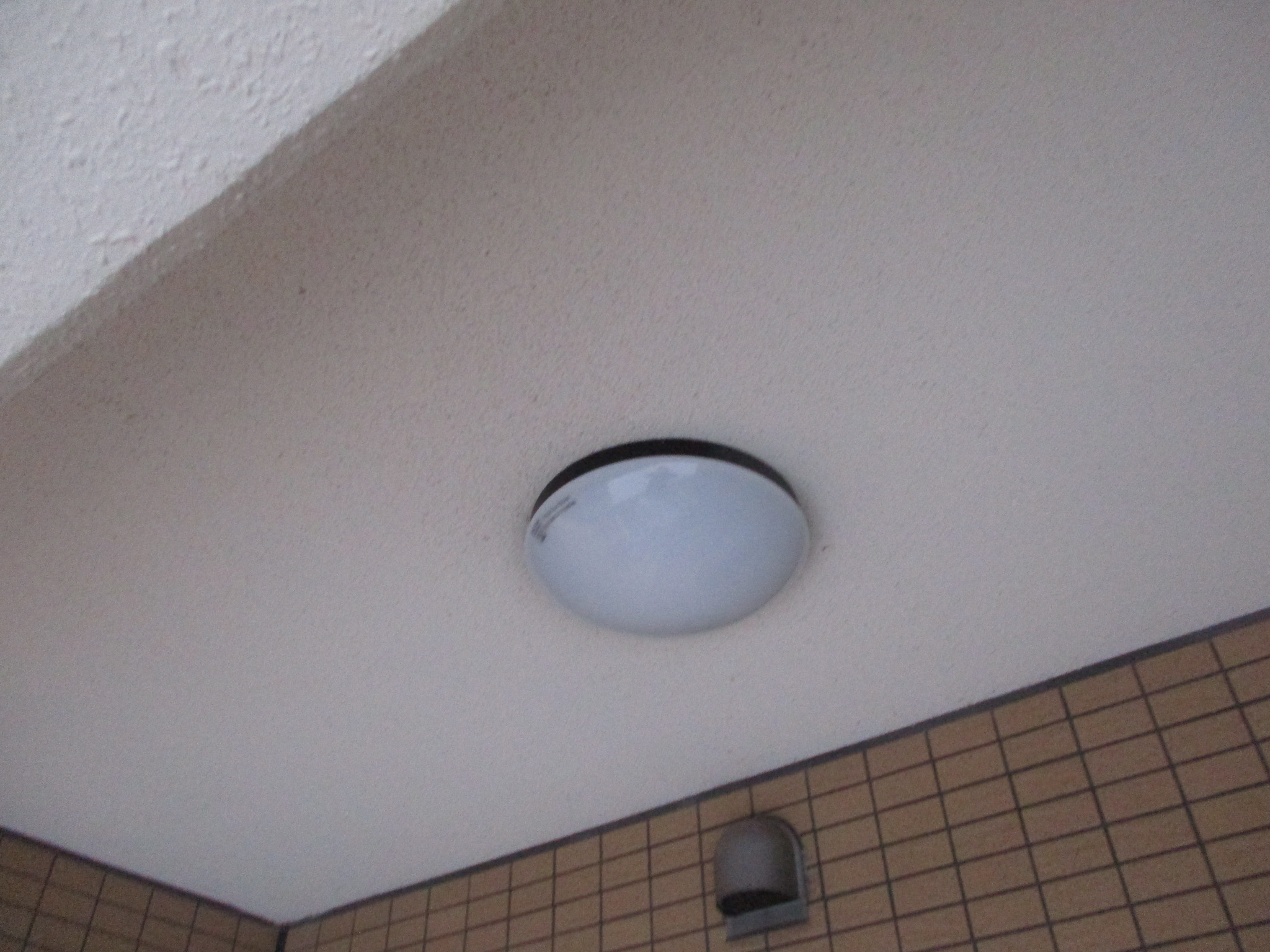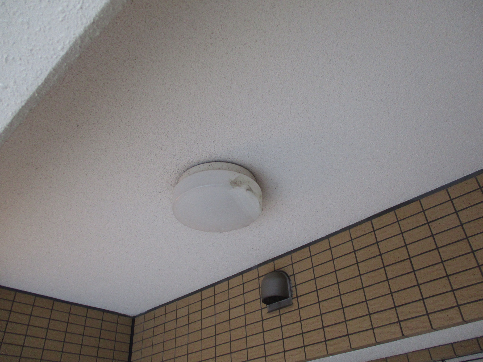 よく観察してみると、プラスチック製の白いカバーの一部が割れて破損してしまっているのがわかります。外灯のカバーが割れたまま放置していると、そこから雨水が内部に侵入して漏電やショートを引き起こす危険性があり、最悪の場合は建物全体が停電してしまう恐れもあります。入居者様の安全を第一に考え、早急に新しい照明器具へと本体ごと交換することになりました。