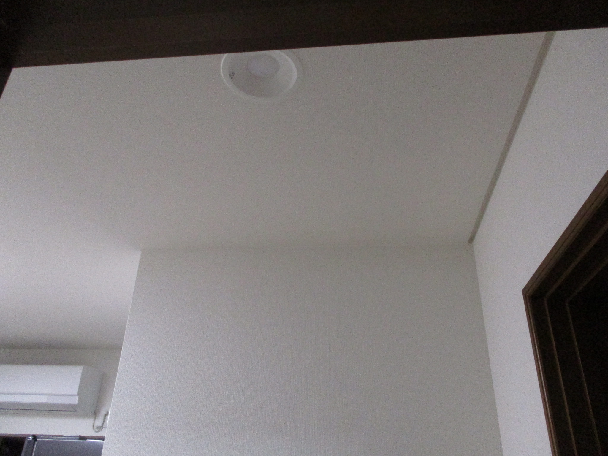 横から見た仕上がりの様子です。壁と天井に隙間なく美しく密着しており、プロの技術で強固に取り付けられています。地震の揺れなどで落下する心配もなく、長期間安全にご使用いただけます。