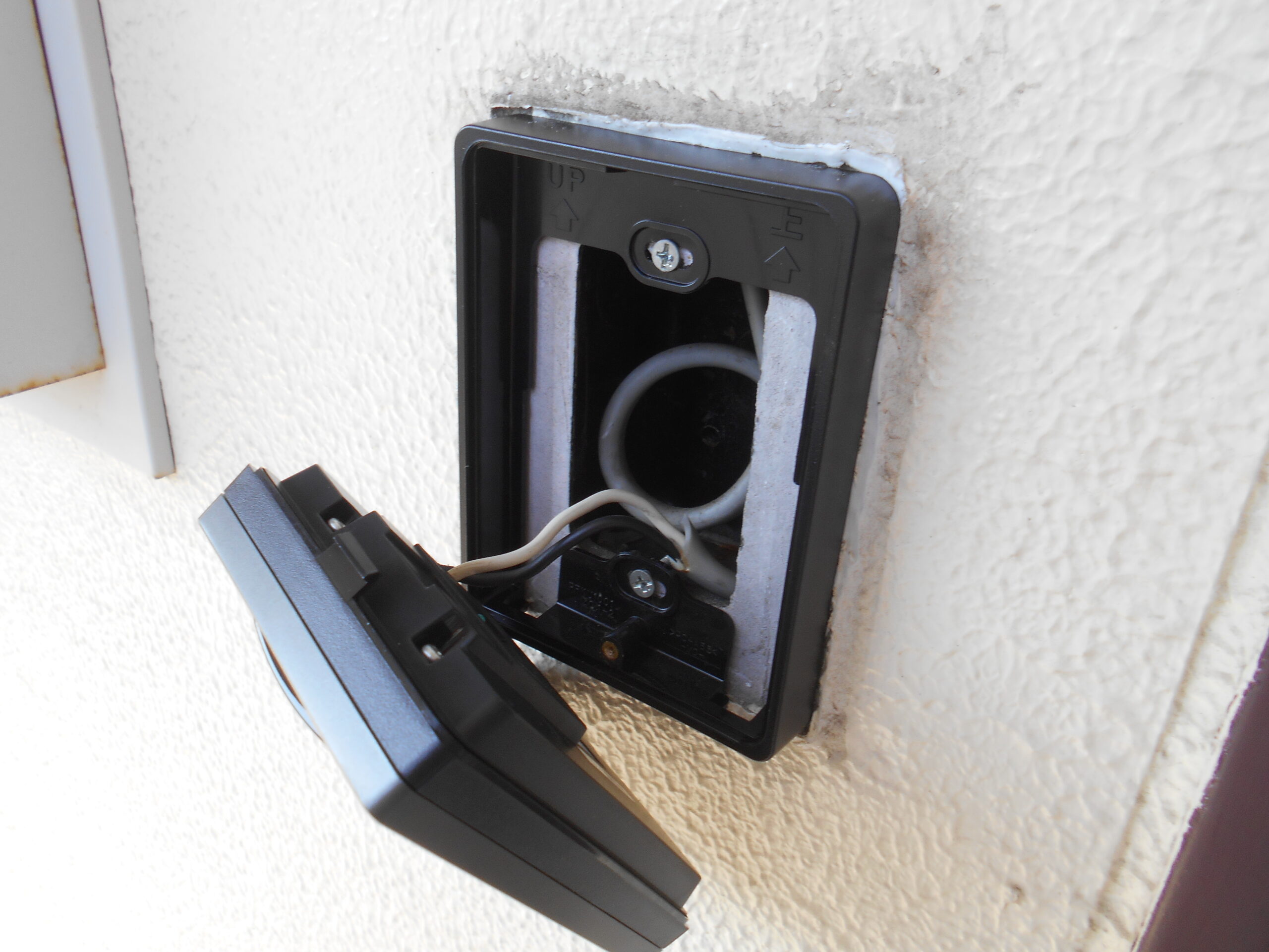 まずは、玄関の外壁に設置されている外側の子機から交換作業を始めていきます。