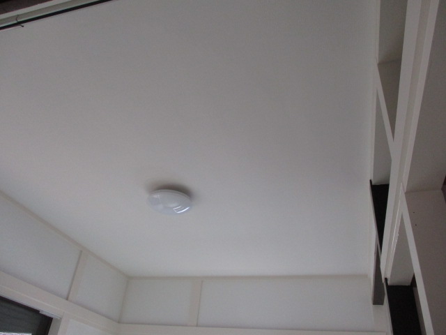 新しくなった天井です。パテによる下地処理が完璧だったため、クロスの継ぎ目も全く目立ちません。