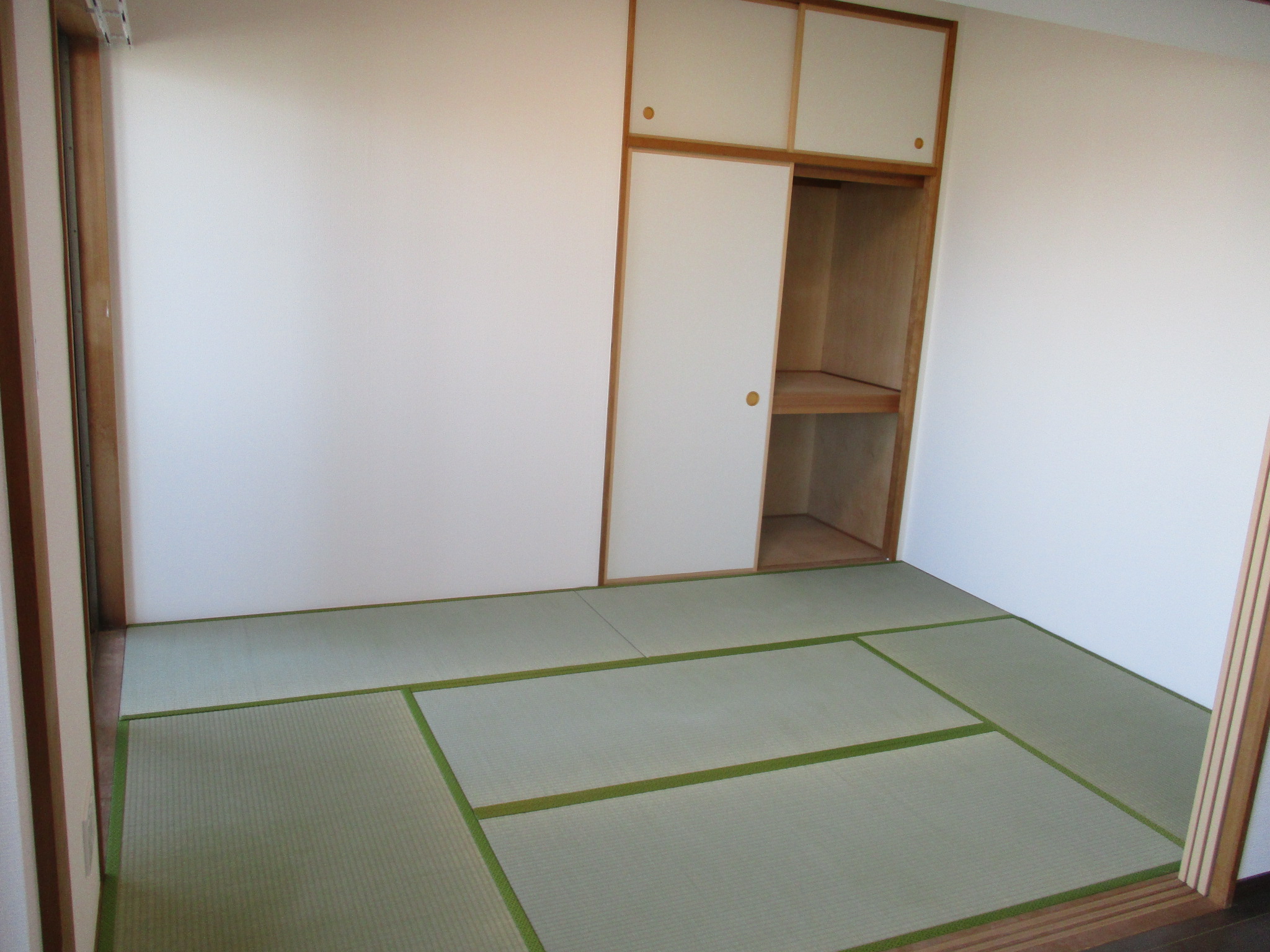 堅牢な下地工事を経て、新たに半畳サイズの「縁なし畳(琉球畳)」を敷き詰めました。和の温もりを残しつつ、現代的な洗練を極めたアフター写真をご覧ください。