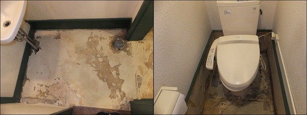 さてさて、今回は店舗トイレの床リフォーム工事を行いました。