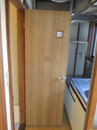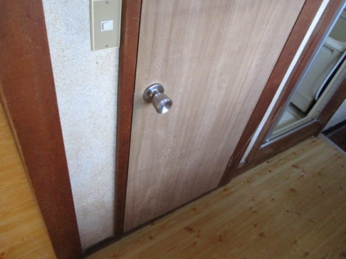 まずは今回、修理を行うこととなったトイレ扉の施工前の状態を確認していきましょう。オーナー様より退去後の修繕依頼としてお預かりしたこの扉は、機能的には問題ありませんでしたが、視覚的な劣化が顕著であり、このままでは新しい入居者を迎えるには不十分な状態でした。汚れや傷、色あせてしまった扉。それが施工前の率直な印象でした。