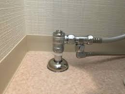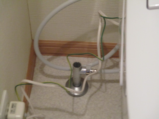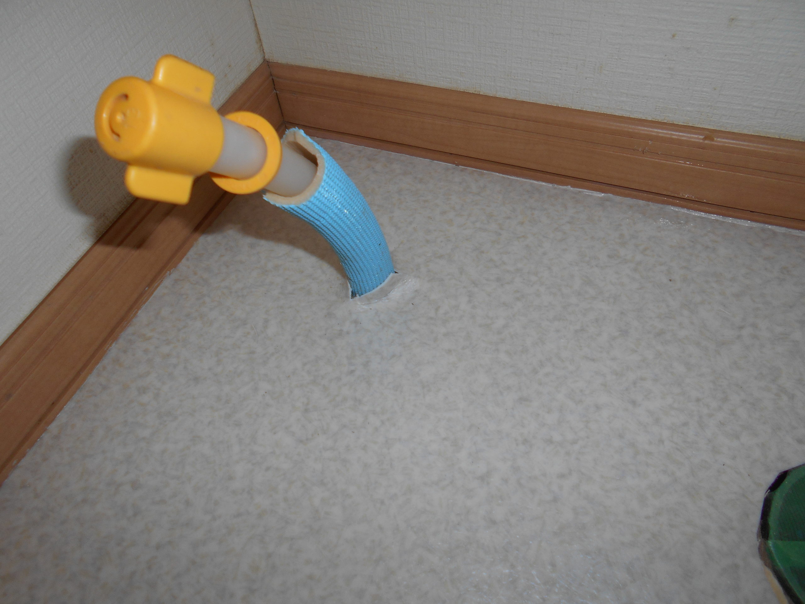 こちらは床出しタイプの一般的な止水栓です。給水管が露出しているのが通常です。