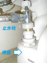 皆様は、トイレに必ず備わっている止水栓というものをご存知でしょうか。止水栓とは、給水管から便器へ送る水を遮断するためのバルブのことで、普段は使う事はありませんが万が一トイレの水が止まらなくなった場合、ここを締めて水を止めることが出来る非常に重要な部品です。通常は、以下の写真のように床や壁から配管が立ち上がり、そこに金属製のバルブが独立して取り付けられています。