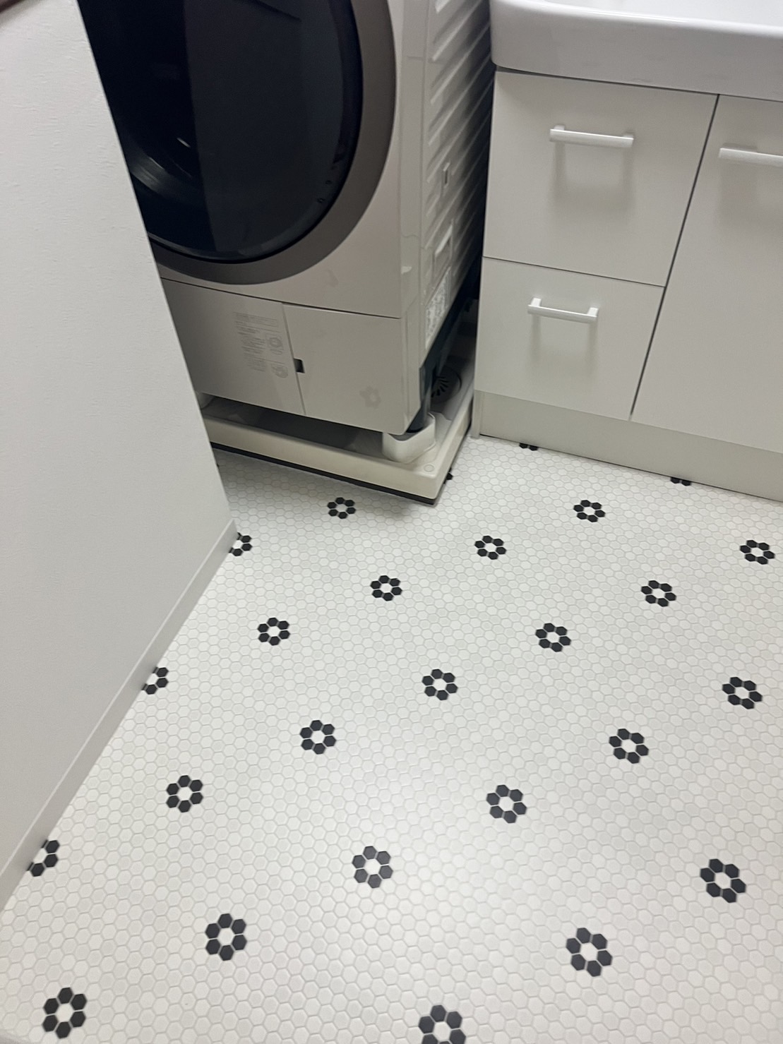 【町田市】洗面室の床を大理石調の光沢フロアタイルへ張替え!ホテルライクな高級感溢れる空間へ大改造