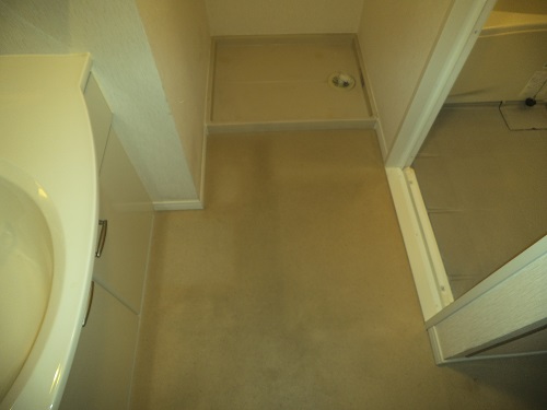 町田市の現場にて、洗面所のクロス、CF貼り替え、防水パン交換をしてまいりました。