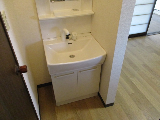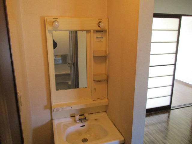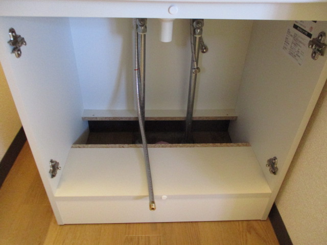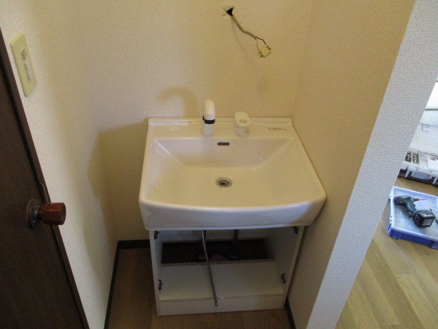 特に破損等は無く、使用には問題は無い洗面化粧台ですが、洗面ボールの汚れや2ハンドルの混合水栓等古さは否めません。