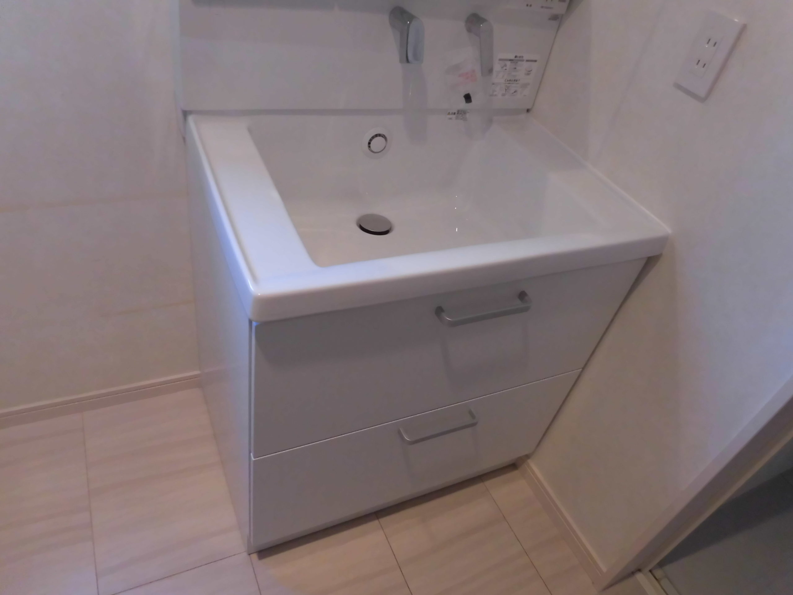 新しい洗面台を搬入する前に、まずは既存の設備の撤去と、お部屋を傷つけないための準備を徹底して行います。ここでの細かな配慮が、最終的な仕上がりの質を左右いたします。